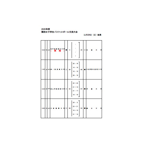 11月29日 2020交流大会_試合結果11月29日ダウンロード 共有: クリックして X で共有 (新しいウィンドウで開きます) X Facebook で共有するにはクリックしてください (新しいウィンドウで開きます) Facebook クリックして印刷 (新しいウィンドウで開きます) 印刷 クリックして Threads で共有 (新しいウィンドウで開きます) Threads いいね 読み込み中…