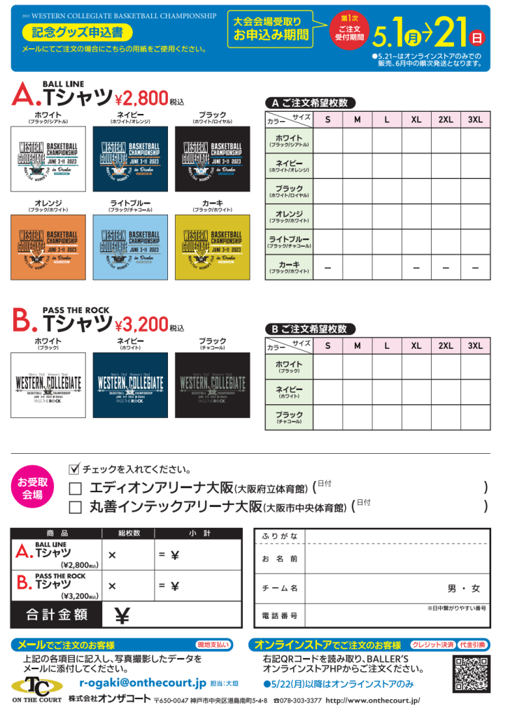 株式会社オンザコートより、「西日本大会の記念グッズ」の販売を行います!!