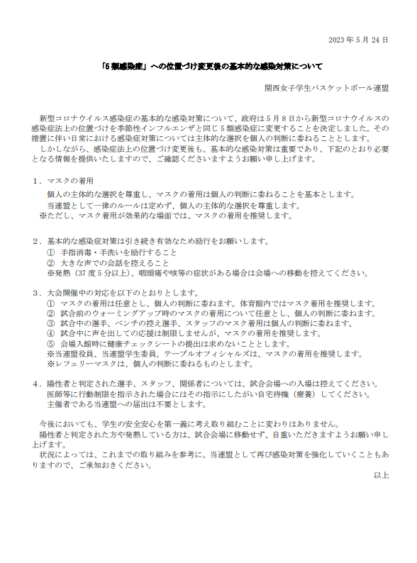 新型コロナウイルス規定変更について 投稿者:kwiba2023年5月31日2023年5月31日カテゴリー:未分類 共有: X で共有 (新しいウィンドウで開きます) X Facebook で共有 (新しいウィンドウで開きます) Facebook 印刷 (新しいウィンドウで開きます) 印刷 Threads で共有 (新しいウィンドウで開きます) Threads いいね 読み込み中…