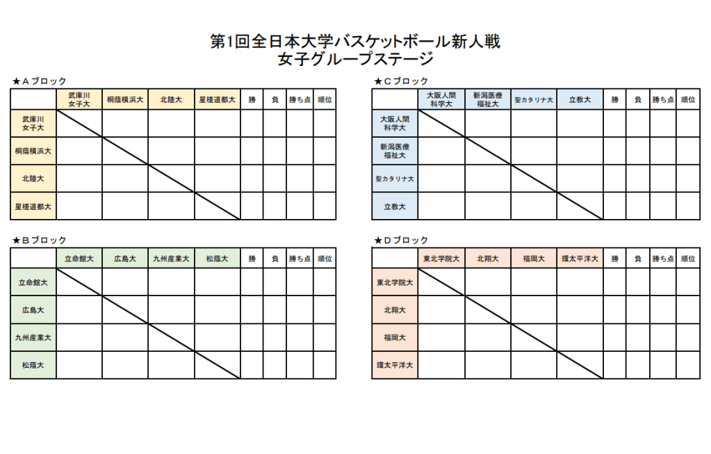 第1回全日本大学バスケットボール新人戦 投稿者:kwiba2023年6月19日カテゴリー:未分類 7月10日から開催されます第1回全日本大学バスケットボール新人戦の組み合わせが発表されました。 関西地区からは「大阪体育大学」「大阪人間科学大学」「武庫川女子大学」「立命館大学」が出場します。 組み合わせ・タイムスケジュールは以下からご確認ください。 公式HPはこちらからご覧ください! https://jubf.jp/news/detail/id/314 共有: クリックして X で共有 (新しいウィンドウで開きます) X Facebook で共有するにはクリックしてください (新しいウィンドウで開きます) Facebook クリックして印刷 (新しいウィンドウで開きます) 印刷 クリックして Threads で共有 (新しいウィンドウで開きます) Threads いいね 読み込み中…