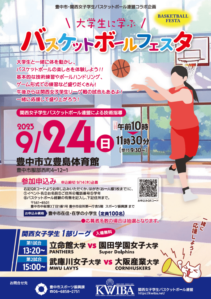 中止の場合は、関西女子学生バスケットボール連盟のホームページバスケットボールフェスタ特設ページにてお知らせしますので、ご確認ください。