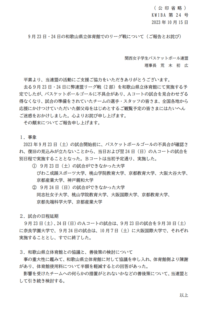 9/23 9/24 2部リーグ延期措置について 投稿者:kwiba2023年10月15日カテゴリー:未分類 共有: クリックして X で共有 (新しいウィンドウで開きます) X Facebook で共有するにはクリックしてください (新しいウィンドウで開きます) Facebook クリックして印刷 (新しいウィンドウで開きます) 印刷 クリックして Threads で共有 (新しいウィンドウで開きます) Threads いいね 読み込み中…